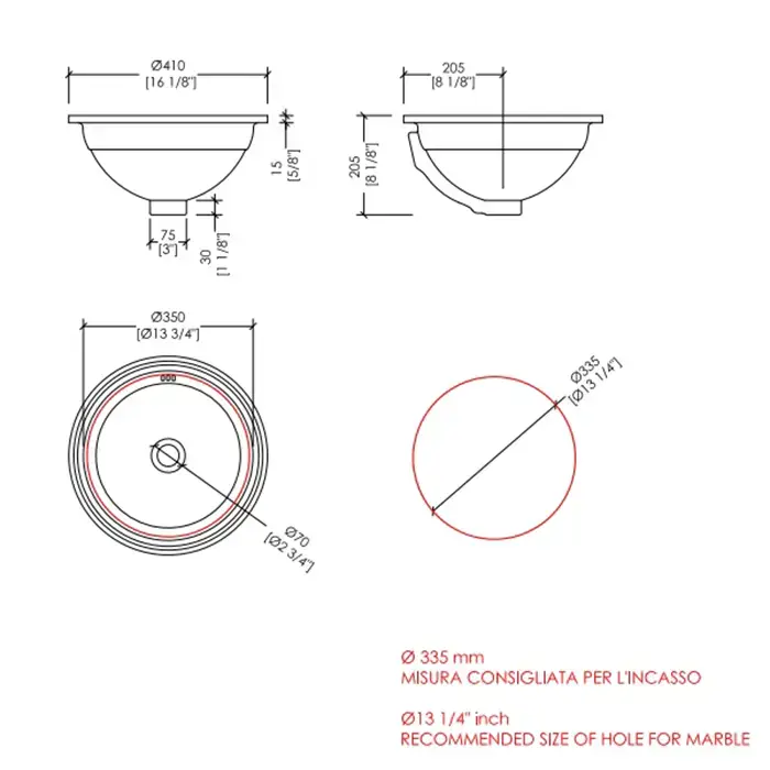 Devon Раковина Babylon ceramic керамическая встраиваемая под столешницу d415, h 205 мм, цвет: белый