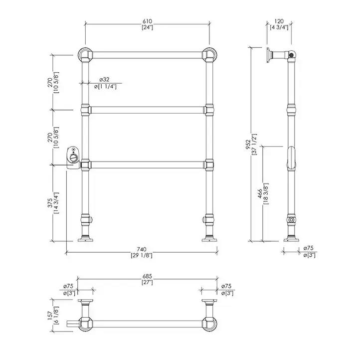 DEVON&DEVON BACCUS 4 Полотенцесушитель электрический 740х952x157 мм., термостат (белый) слева, цвет светлое золото