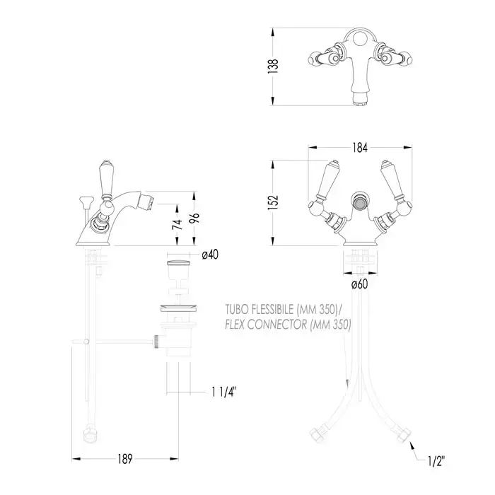 Devon Black Dandy Смеситель для биде на 1 отв., с донным клапаном, c ручками черными, цвет: никель блестящий