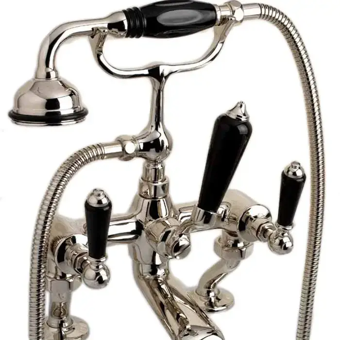 Devon Black Dandy Смеситель для ванны, монтаж на бортик ванны, с лейкой и шлангом, ручки черные цвет: никель блестящий