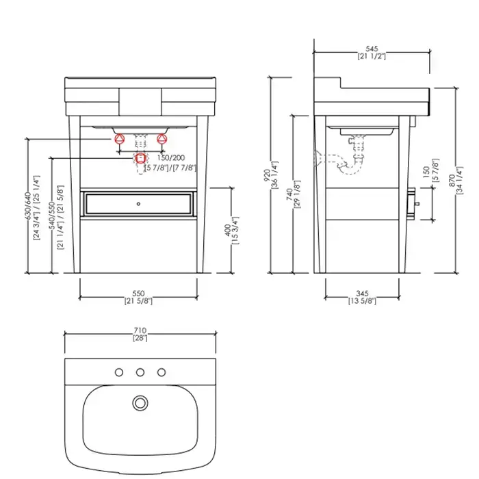 Devon Bogart Раковина с 3 отв. под смеситель 71x54,5xh26,5 см, цвет белый (со склада продаем с тумбой EFBOGART) НЕ производится!