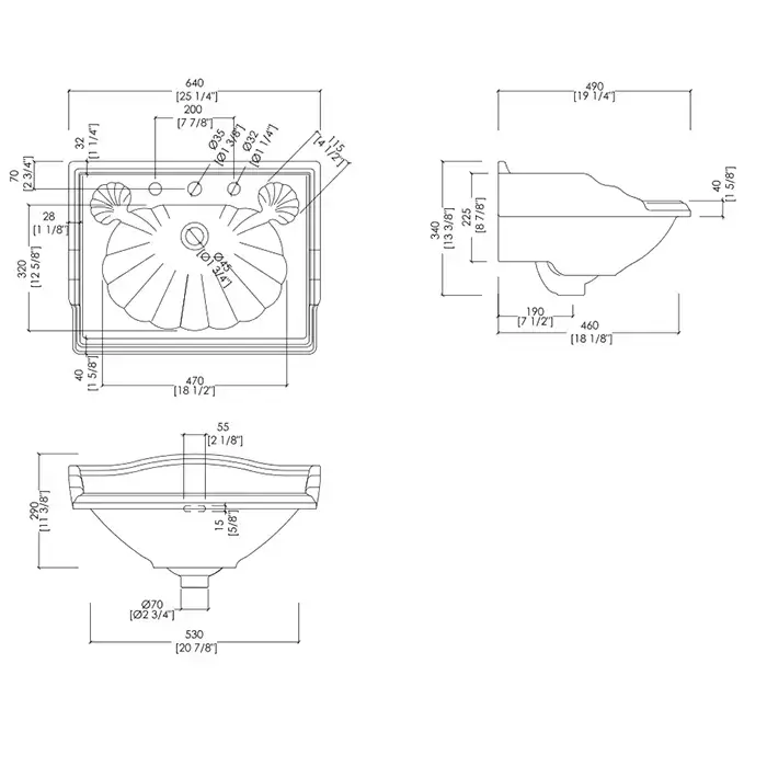 Devon Cambridge Раковина (64х49 см) с 3 отверстием под смеситель, для пьедестала/консолей ANGEL/TIFFANY, цвет: белый