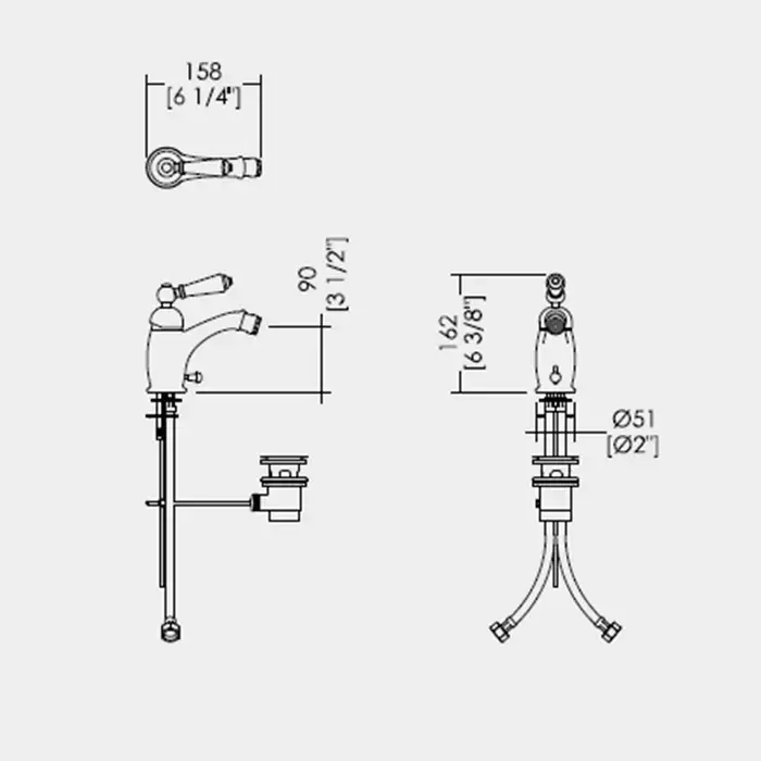 Devon&Devon Dandy Смеситель для биде на 3 отв., с донным клапаном, c ручками белыми, цвет: хром