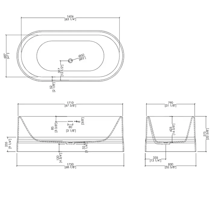 Devon&Devon Diva Ванна из минерального литья отдельностоящая 171x87xh70,5cм, цвет: белый