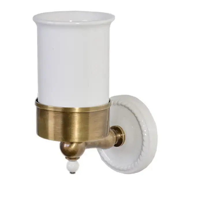 Devon DOROTHY стаканчик (керамика белая) для з/щеток настенный, держатель цвет: бронза/белый