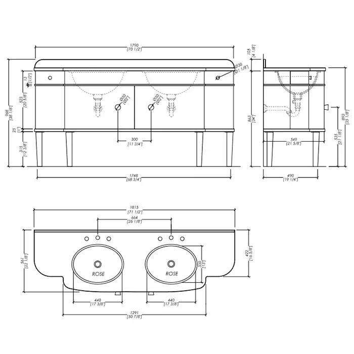 Devon Double Music Комплект мебели 180.5x56x96,8 см, состаренная алюминиевая отделка со столешницей из гранита nero assoluto