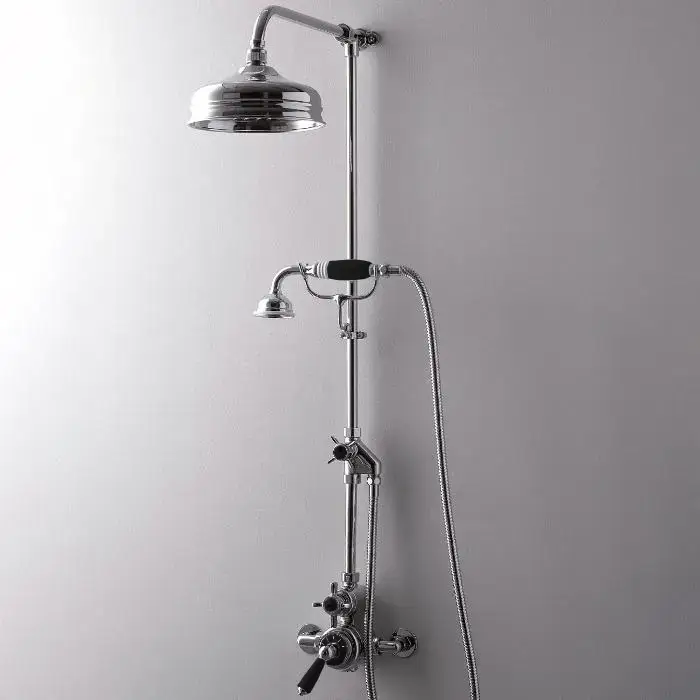 Devon&Devon Душевая стойка, с термостатическим смесителем, верхним душем 20см., и ручным душем, цвет: черный/хром