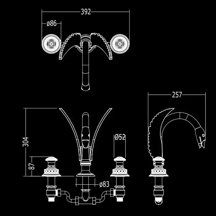Devon&Devon Excelsior Swan Смеситель для раковины на 3 отверстия, донный клапан. Цвет: хром.