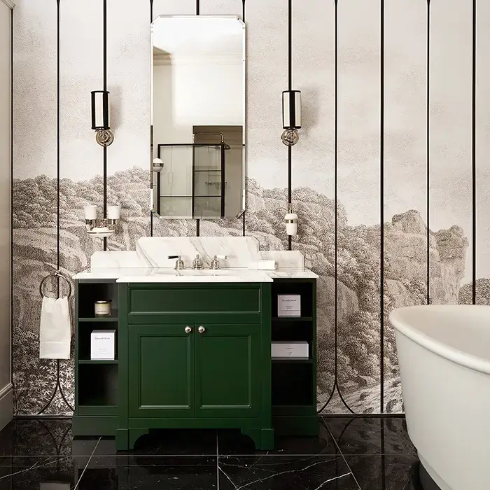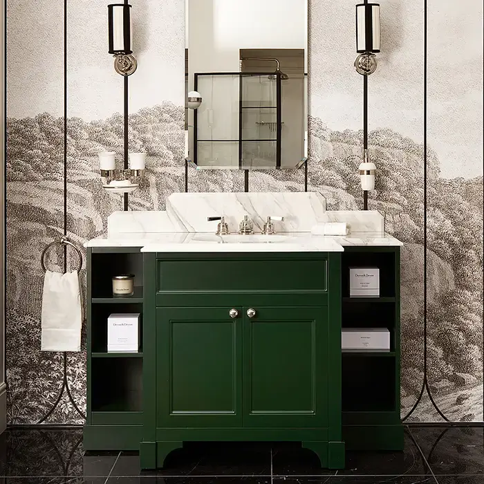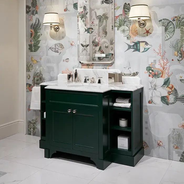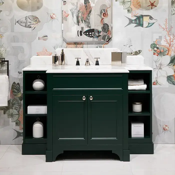 Devon Flair Тумба под раковину 128х102 см, со столешницей из мрамора CALACATTA BORGHINI, раковина WHITE50 , цвет мебели ENGLISH GREEN