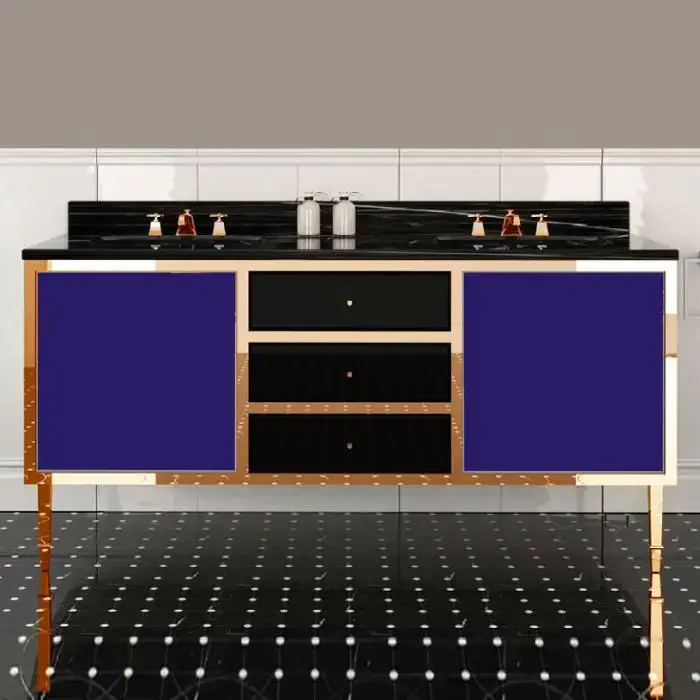 Devon&Devon Audrey, Комплект мебели мрамор: nero marquina, ножки золото, напольный, Цвет: чёрный с белым кантом,