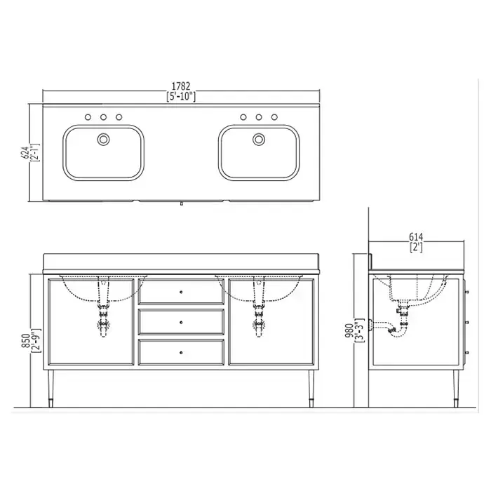 Devon&Devon Audrey, Комплект мебели мрамор: nero marquina, ножки золото, напольный, Цвет: чёрный с белым кантом,