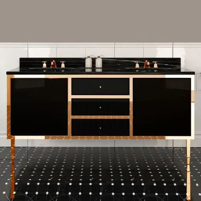 Devon&Devon Audrey, Комплект мебели мрамор: nero marquina, ножки золото, напольный, Цвет: чёрный с белым кантом,
