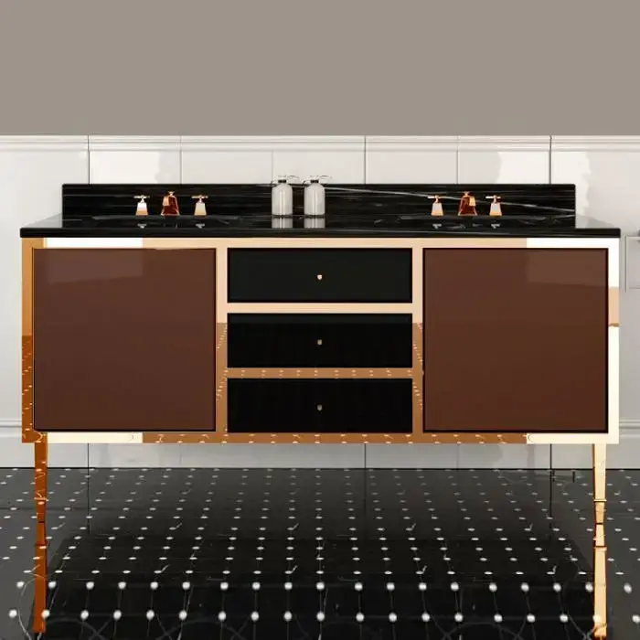 Devon&Devon Audrey, Комплект мебели мрамор: nero marquina, ножки золото, напольный, Цвет: чёрный с белым кантом,