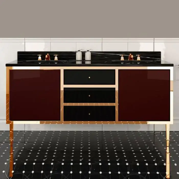 Devon&Devon Audrey, Комплект мебели мрамор: nero marquina, ножки золото, напольный, Цвет: чёрный с белым кантом,