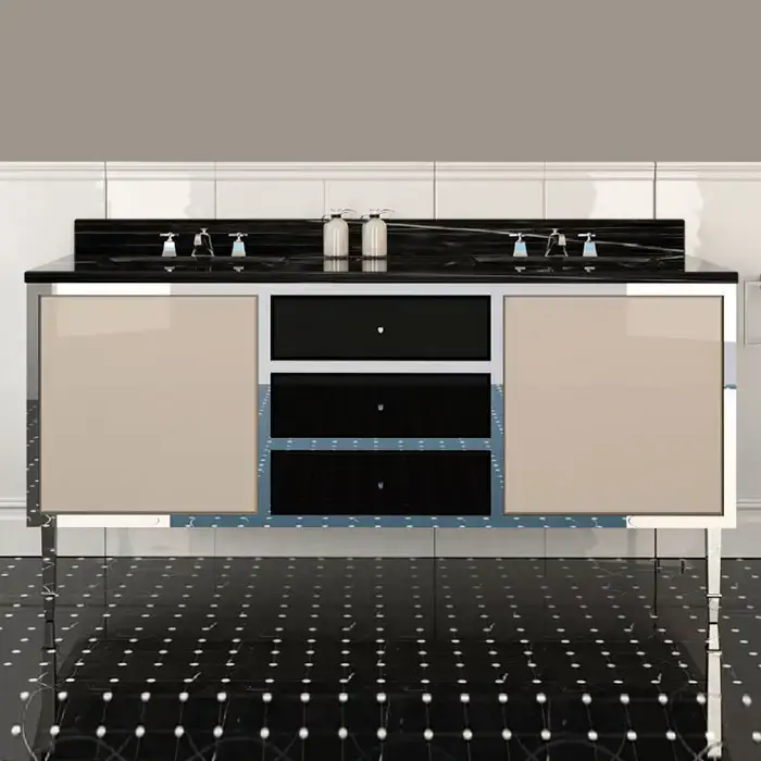 Devon&Devon Audrey, Комплект мебели мрамор: nero marquina, ножки золото, напольный, Цвет: чёрный с белым кантом,