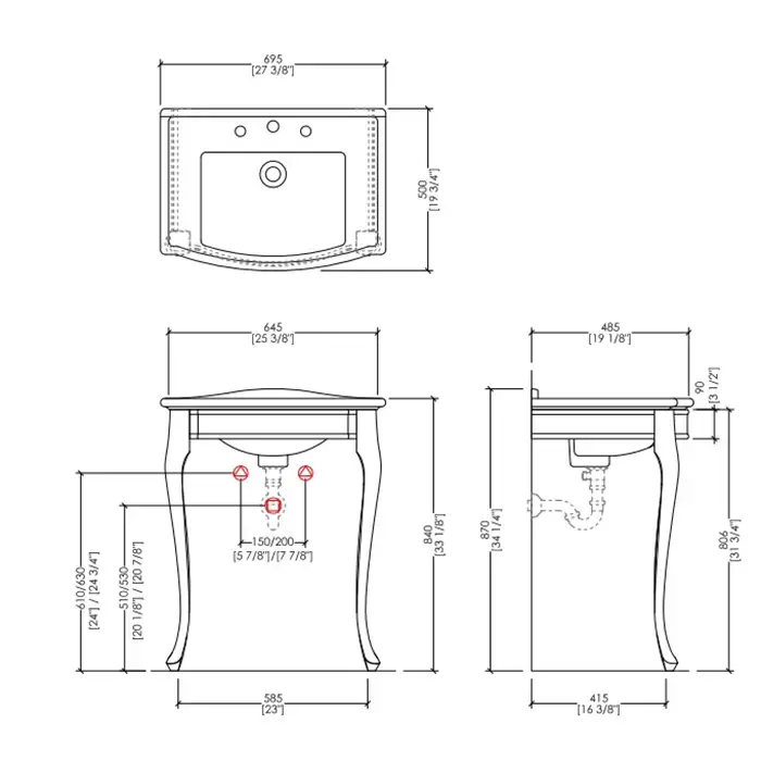 Devon Lady Металлич консоль (635х485хh840 мм) на 2х ножках, цвет: хром