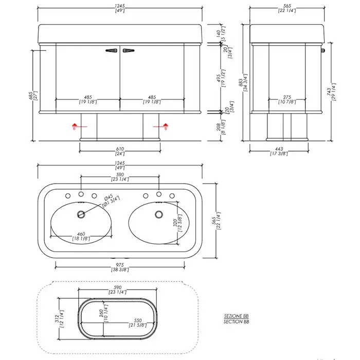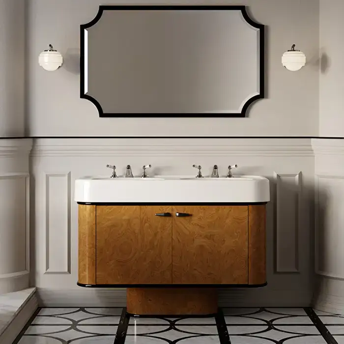 Devon Liberty Тумба под раковину двойная 124.5х88.3 см, с керамической раковиной WIDE BLUES на3 отв , цвет мебели RADICA DI NOCE глянец