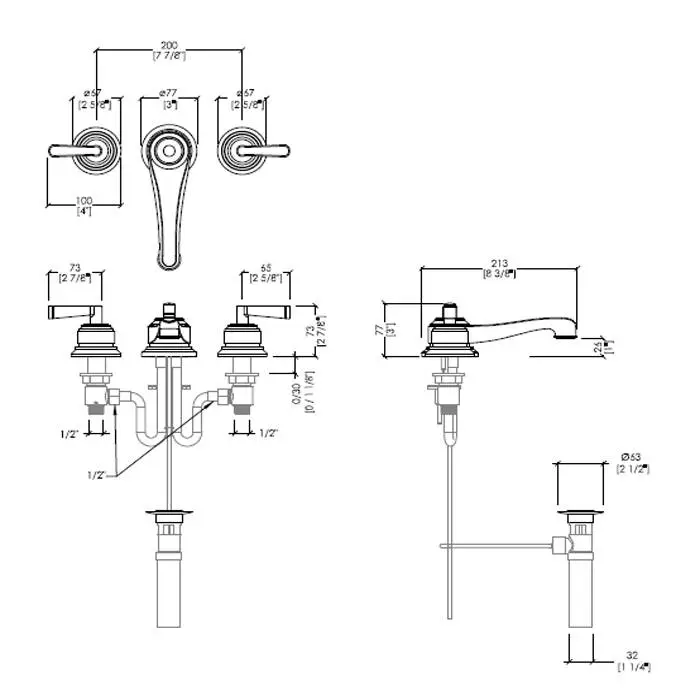 Devon & Devon Manhattan Смеситель для раковины на 3 отв, с донным клапаном, цвет никель блестящий