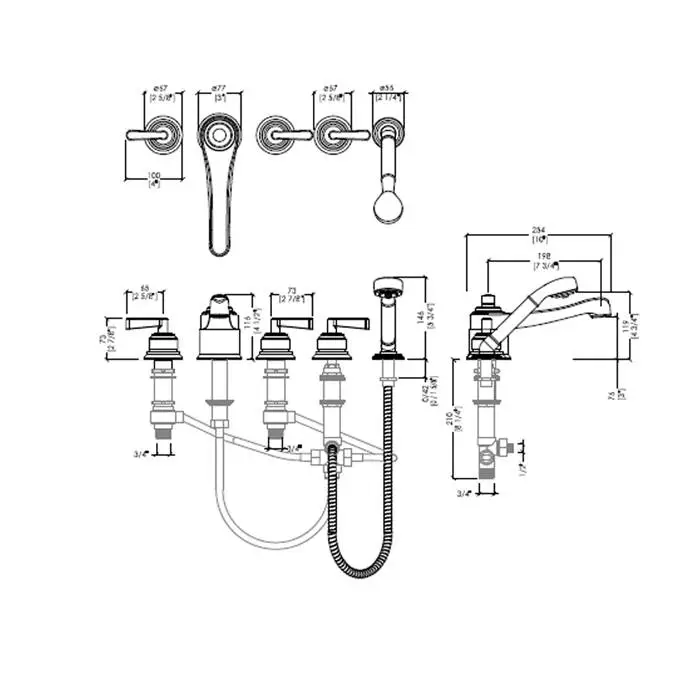 Devon & Devon Manhattan Смеситель на борт ванны на 5 выходов, с переключателем и ручной лейкой, цвет: никель блестящий