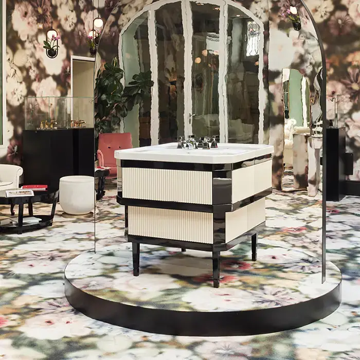 Devon&Devon Metropolitan Тумба под раковину DEEP BLACK 88,5см, планками PURE WHITE, столешница GRANITO NERO ASSOLUTO, раковина SWINDON черная