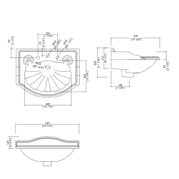 Devon&Devon Oxford Раковина 65х50 см, 3 отв., на пьедестале, цвет: белый
