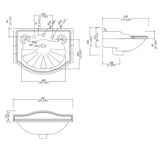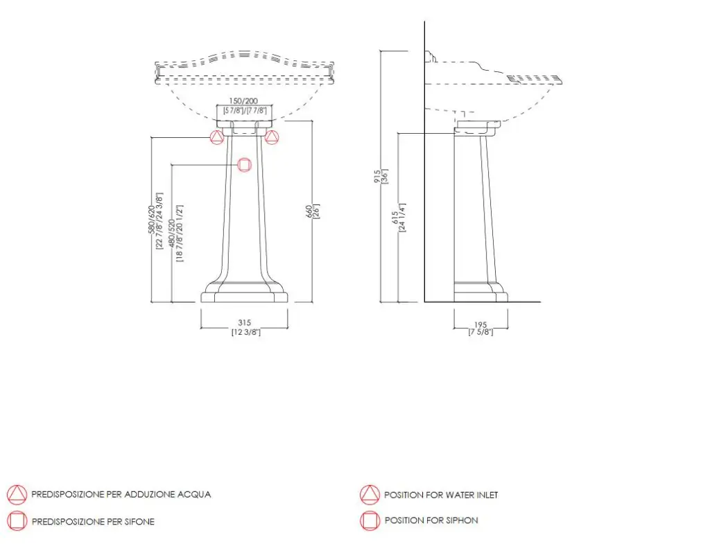 Devon&Devon Oxford Раковина 65х50 см, 3 отв., на пьедестале, цвет: белый