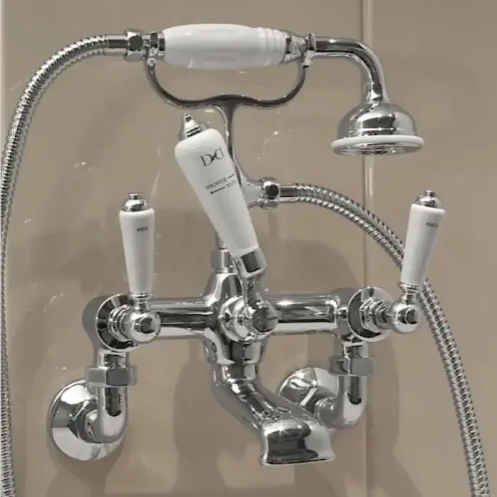 Devon Dandy Смеситель для ванны, монтаж на стену без эксцентриков - межосевое расстояние 194мм, с лейкой и шлангом, цвет: хром