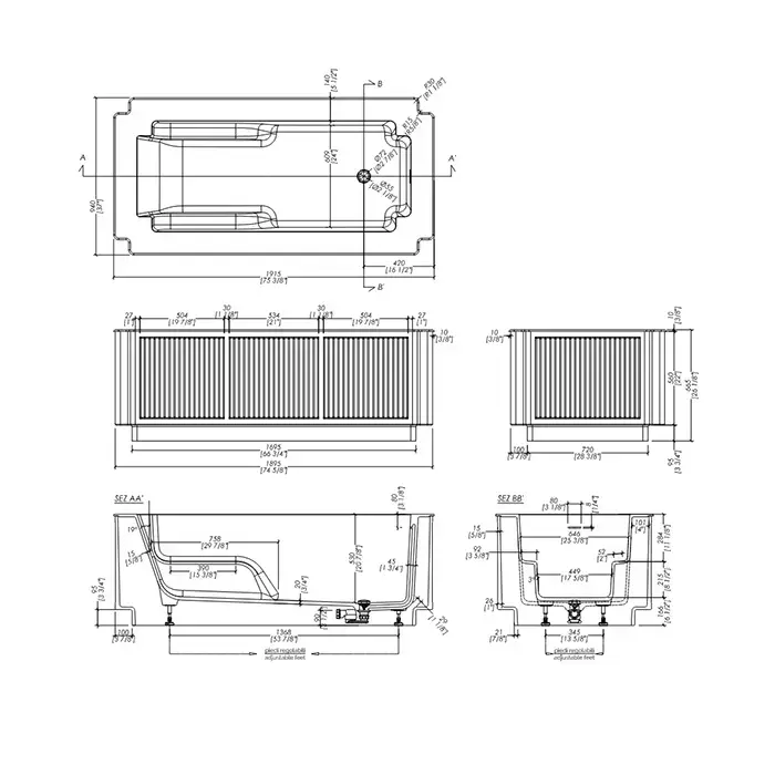 Devon The Thirties Ванна 1915х940см, WHITE TEC Plus, объем 374л, вес 223кг, сифон + крышка слива white tec в комплекте, цвет белый матовый
