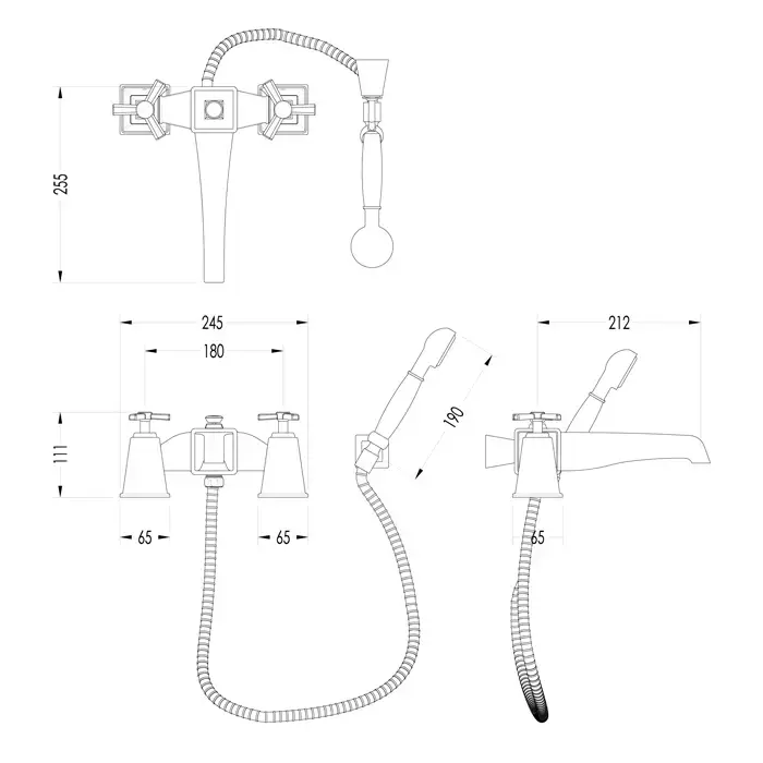 Devon Time Смеситель на борт ванны на 2 отв с ручной лейкой и шлангом , цвет светлое золото