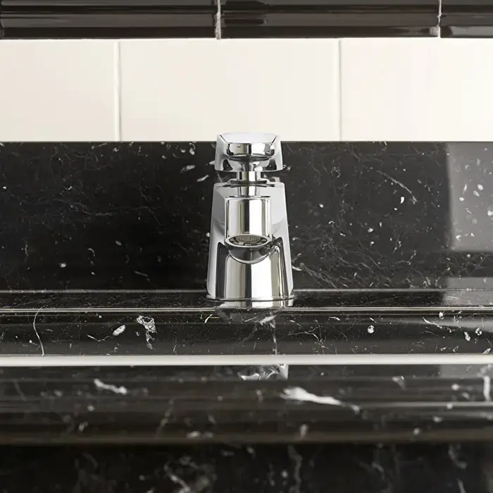 Devon&Devon Twenties Смеситель для раковины, на 3 отв., с донным клапаном, цвет: черный матовый/Bianco Carrara