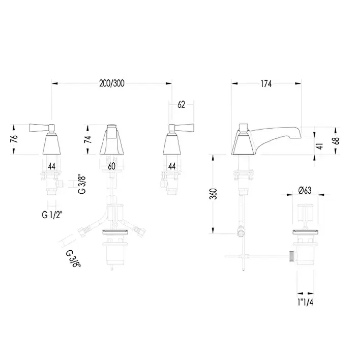 Devon&Devon Vip Time Смеситель для раковины, на 3 отв., с донным клапаном, ручки из черного хрусталя, цвет: хром