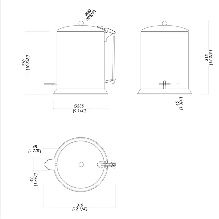 Devon&Devon Waltz Ведро для мусора, с крышкой и педалью, напольный, цвет: никель блестящий