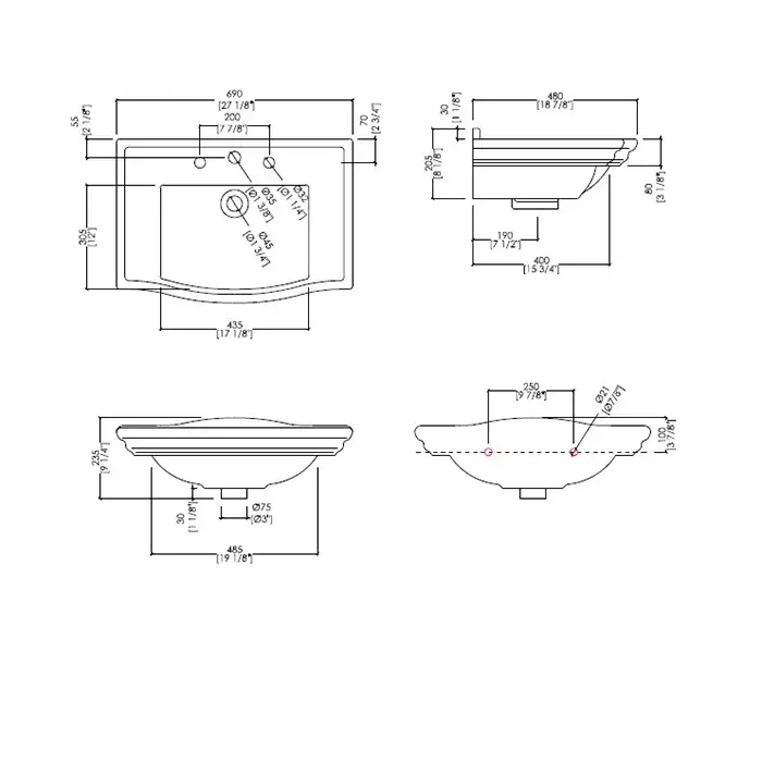 Devon&Devon Westminster Раковина (69х49 см) с 1 отверстием под смеситель, цвет: белый