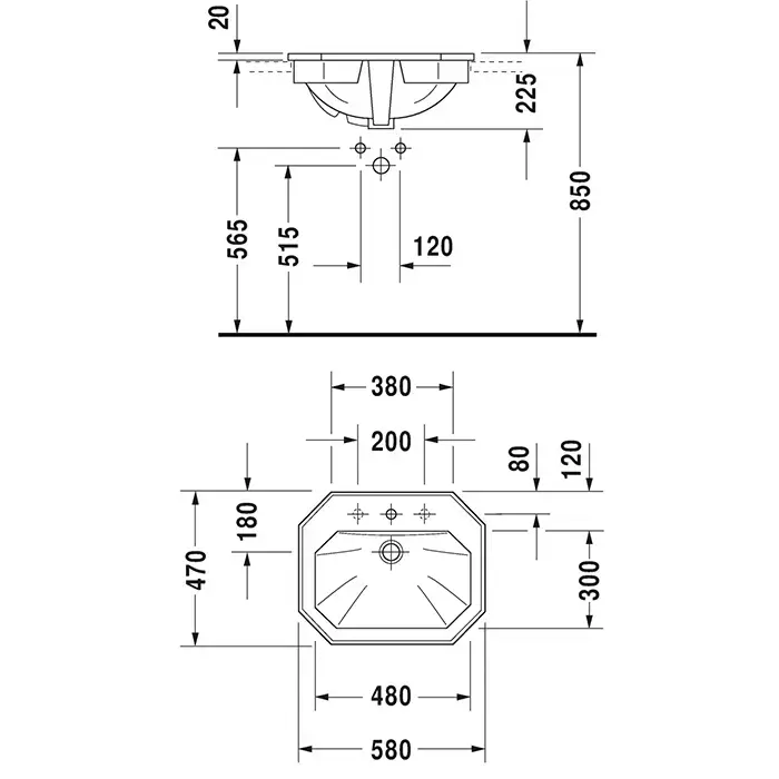 Duravit 1930 Раковина для встраивания сверху, 58х47хН:22.5см., с 1 отв., цвет: белый