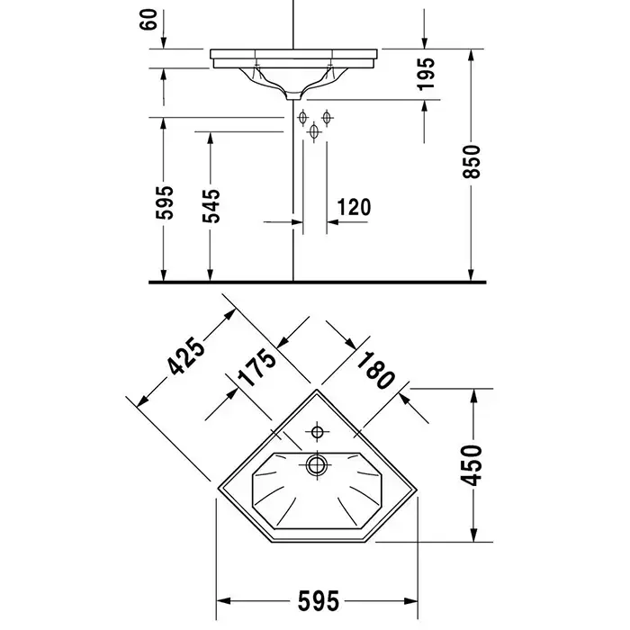 Duravit 1930 Раковина подвесная, 59х45х Н: 19.5см., угловая, 1отв., цвет: белый