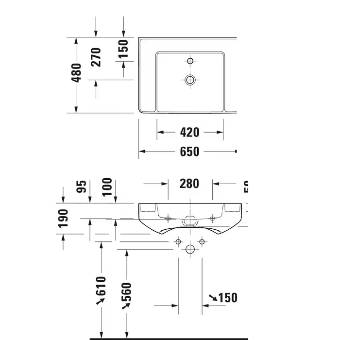 DURAVIT Bento Starck Box Раковина подвесная 650х480мм,, с 1 отв под смеситель, HygieneGlaze, белый глянцевый