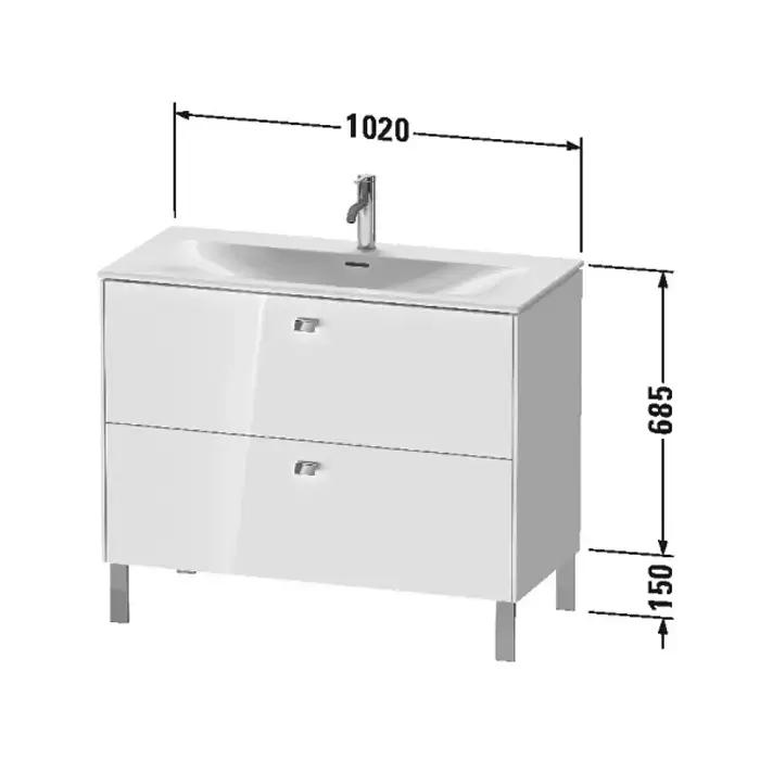 Duravit Brioso База напольная 102x47.9x68.5см с раковиной, 2 ящика, цвет: глянцевый белый