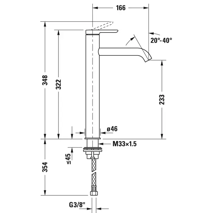 Duravit C.1 Смеситель для раковины на 1 отв. высокий h=322 мм, излив 166мм, цвет: хром