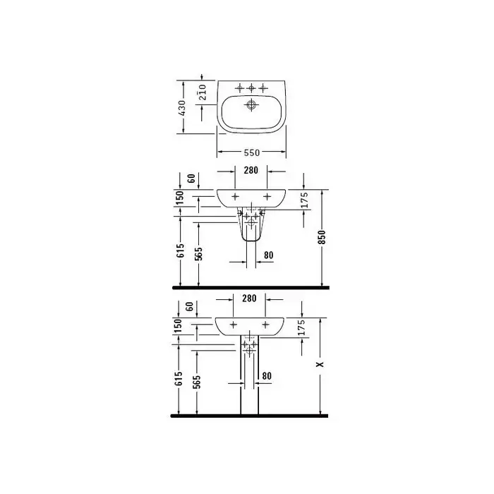 Duravit D-Code Раковина с перел., с 1 отв. под смес., 550x430мм, Цвет: Белый