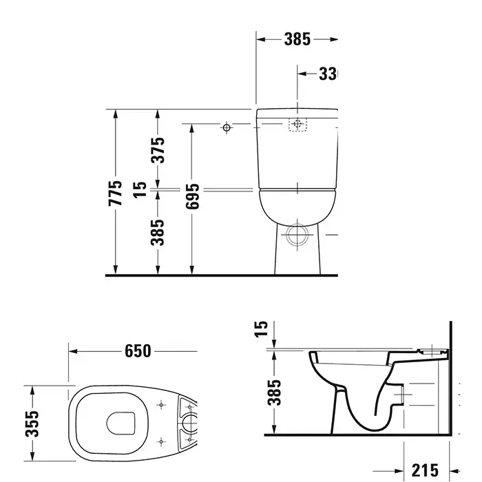 Duravit D-Code Унитаз моноблок с отдельным бачком (не вкл. бачок), 650х355 мм. слив универсальный, цвет белый
