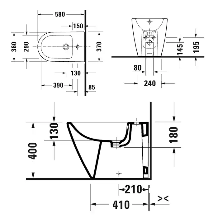 Duravit D-Neo Биде напольное 37x58х40 см, с переливом, с 1 отв., цвет: белый