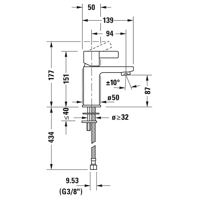 Duravit D-Neo Смеситель для раковины на 1 отв., без донного клапана, h=151мм, излив 94мм цвет: хром