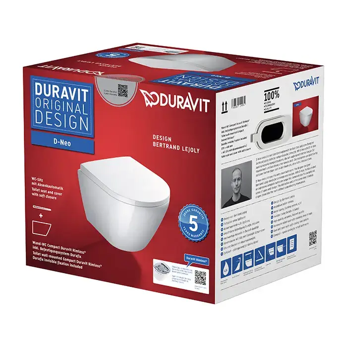 Duravit D-Neo Унитаз подвесной 48х37см, безободковый, сиденье микролифт, цвет: белый