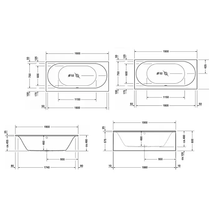 Duravit Darling New Ванна 1900х900 мм, акриловая, прямоугольная встраиваемая или с панелями,с 2 наклонами для спины, цвет белый