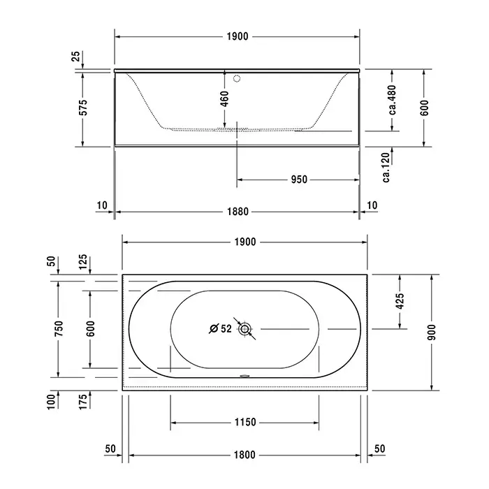 DURAVIT DARLING NEW Ванна прямоугольная 1900х900 мм., комплектация Combi-System L, акрил, цвет белый