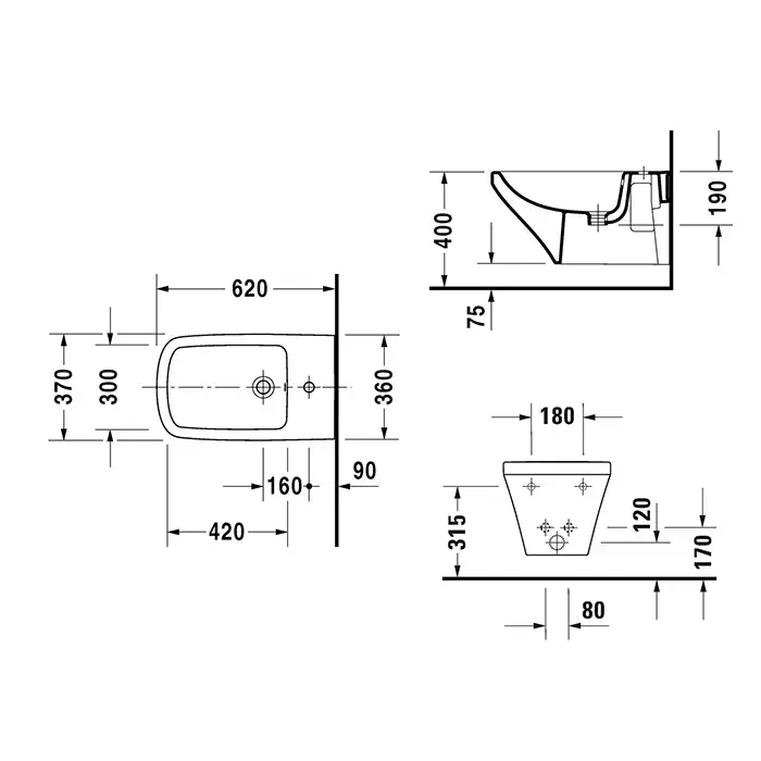 Duravit DuraStyle Биде подвесное 620х370 мм, с 1 отв под смеситель. с креплением, цвет белый c WonderGliss
