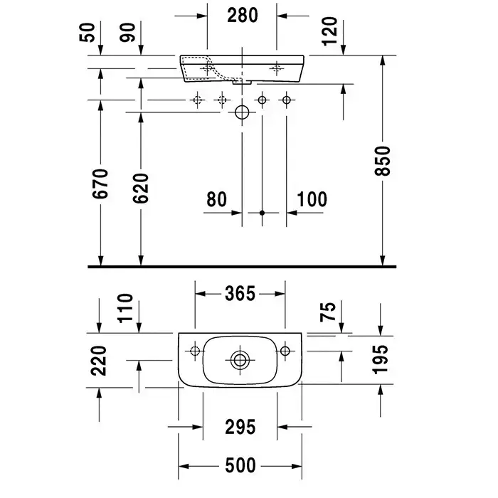 Duravit DuraStyle Умывальник для рук без перелива, без отв. для смесителя, 500x220мм, Цвет: Белый (СПЕЦЦЕНА)
