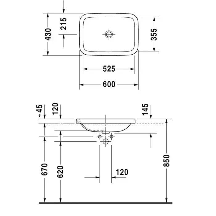 Duravit DuraStyle Раковина встраиваемая 60x43см, без отв., без перелива, покрытие WonderGliss, цвет: белый