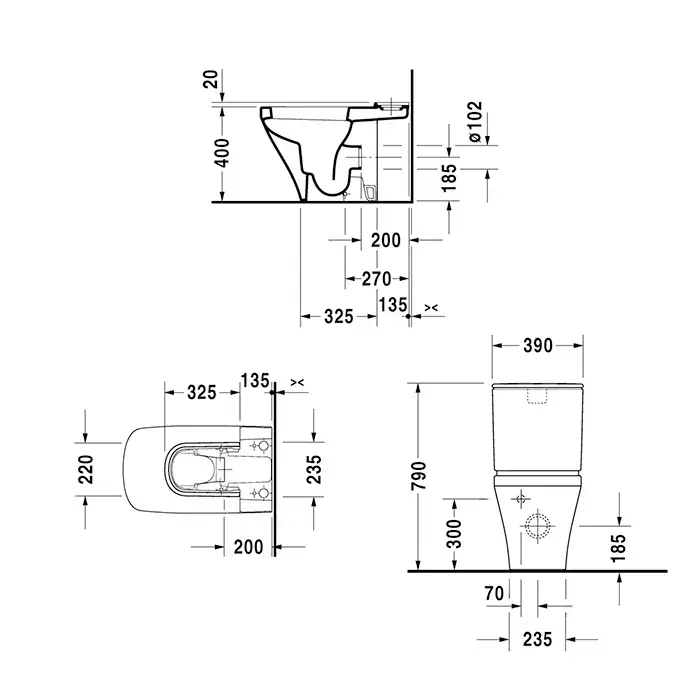 Duravit DuraStyle Унитаз моноблок 370х630 мм, слив в стену, цвет белый