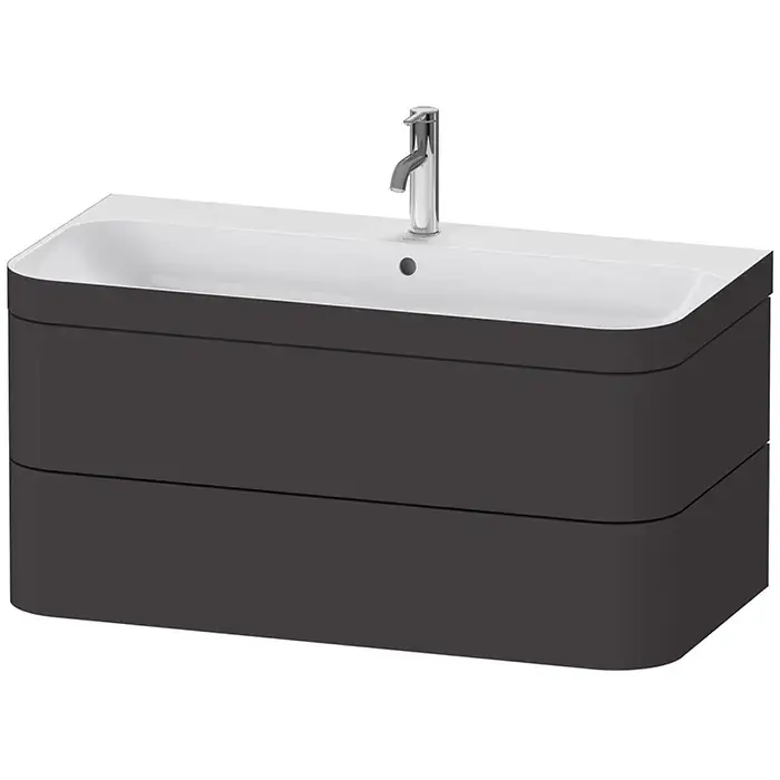 Duravit Happy D.2 Plus Тумба подвесная 97.5х49х46.8см, c-shaped с раковиной, с 1 отв., 2 ящика, выпуск и сифон в комплекте, цвет: графит суперматовый